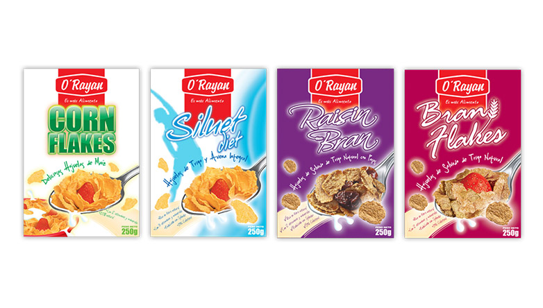 Branding des emballages, design des logo Siluet diet, Raisin Bran et Bran Flakes.