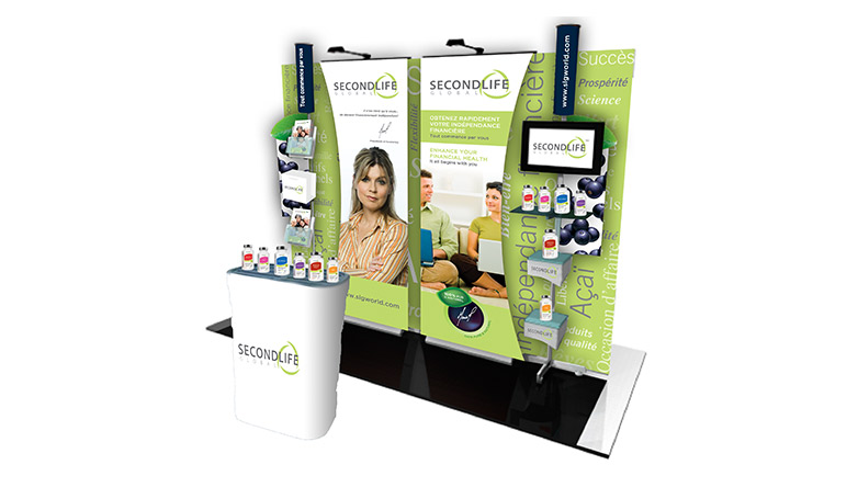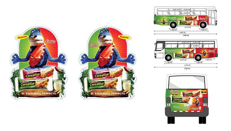 Lancement de produit : fanions, autobus.